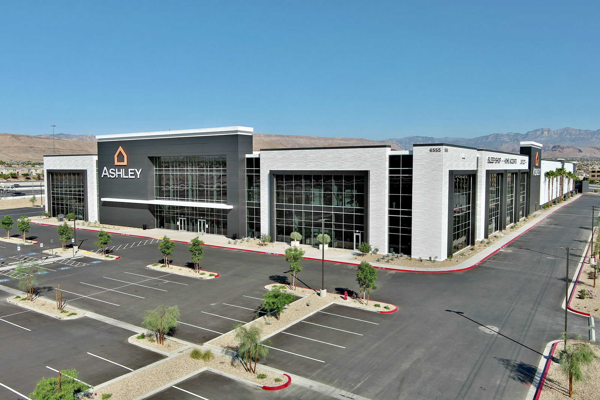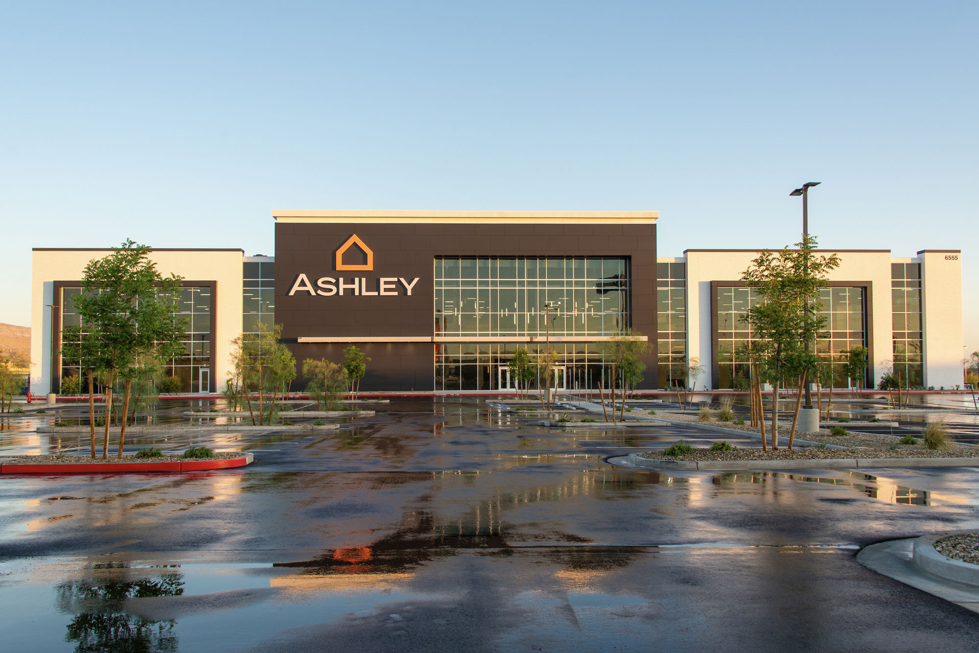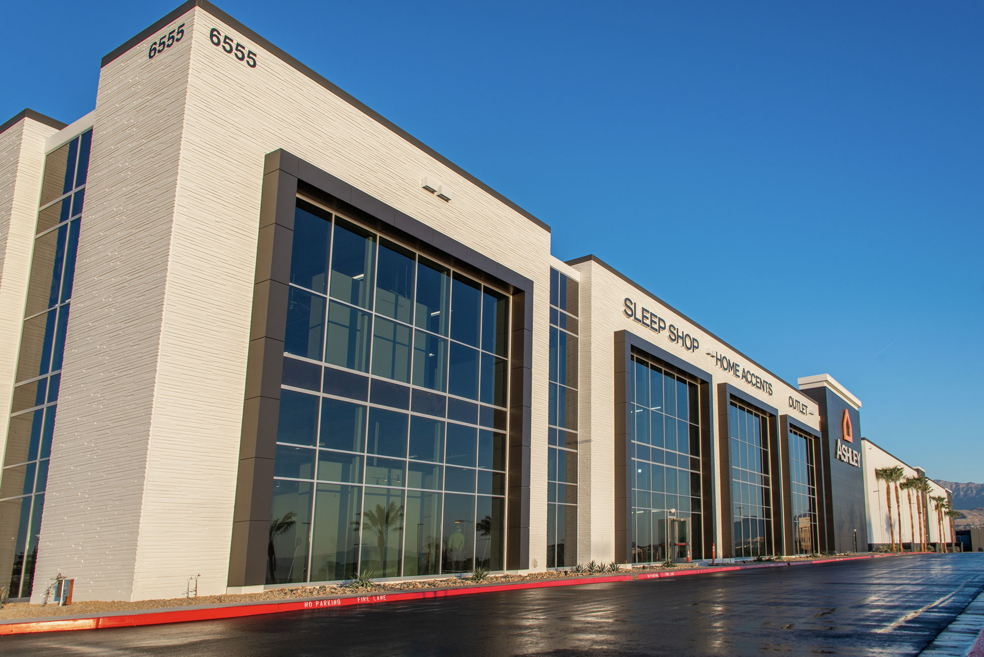 Designed as both a destination and a distribution hub, Ashley at The Curve establishes a bold new presence in Las Vegas at 6555 S. Riley Street. The project brings together an 88,000-square-foot, two-story showroom with a 218,000-square-foot, two-story warehouse, conceived as an integrated environment that blurs the boundary between retail experience and logistics efficiency.