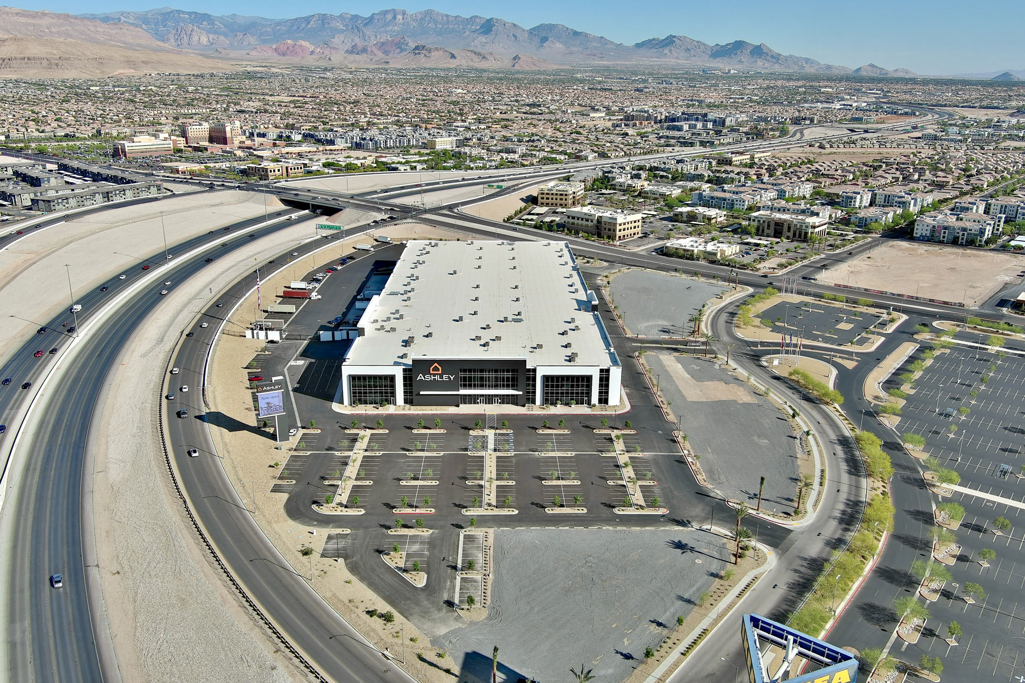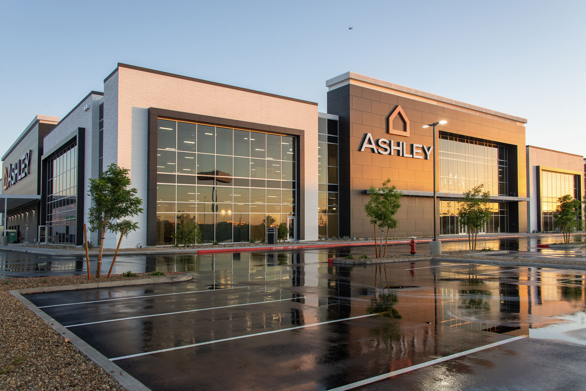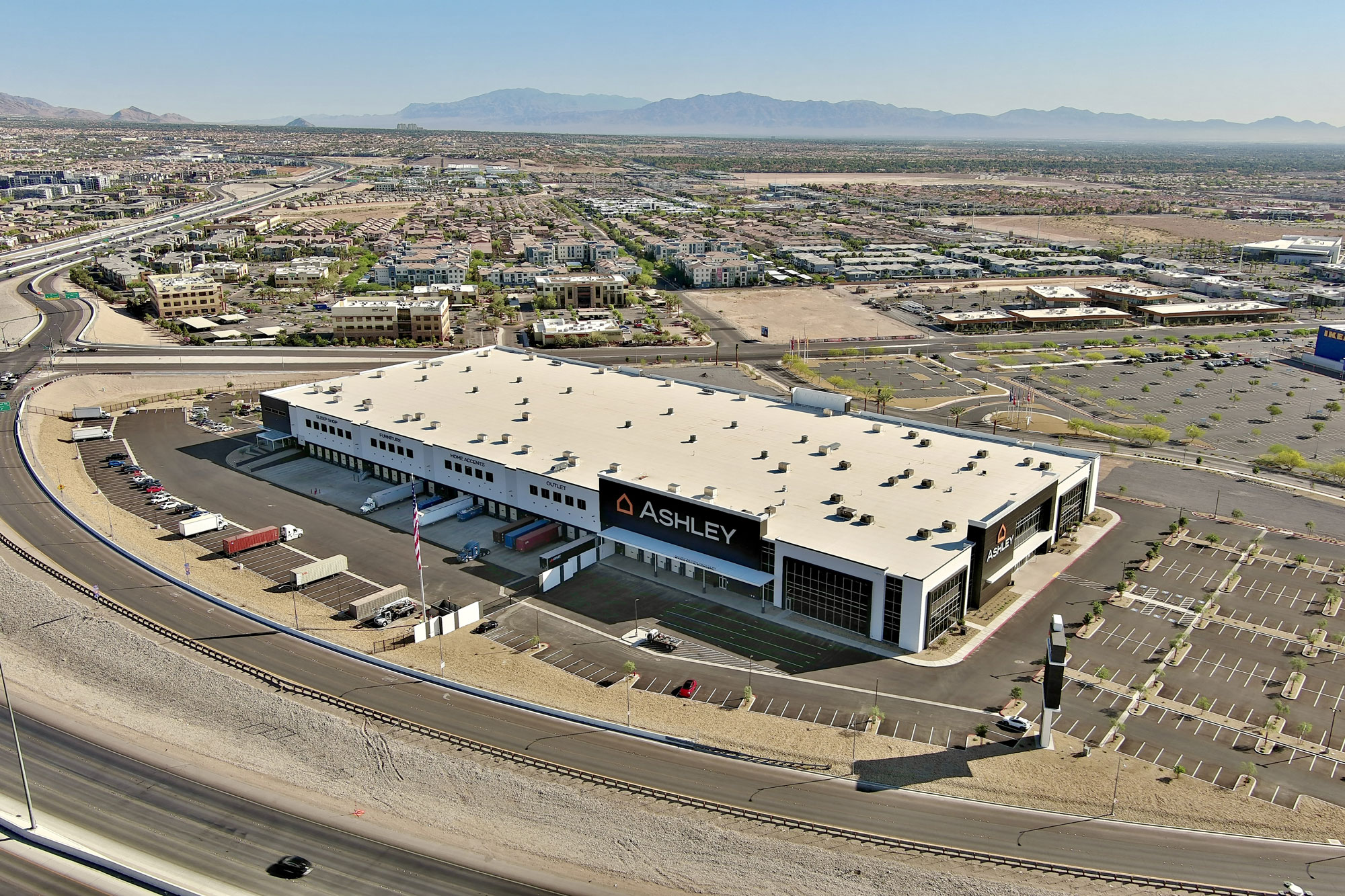 Designed as both a destination and a distribution hub, Ashley at The Curve establishes a bold new presence in Las Vegas at 6555 S. Riley Street. The project brings together an 88,000-square-foot, two-story showroom with a 218,000-square-foot, two-story warehouse, conceived as an integrated environment that blurs the boundary between retail experience and logistics efficiency.