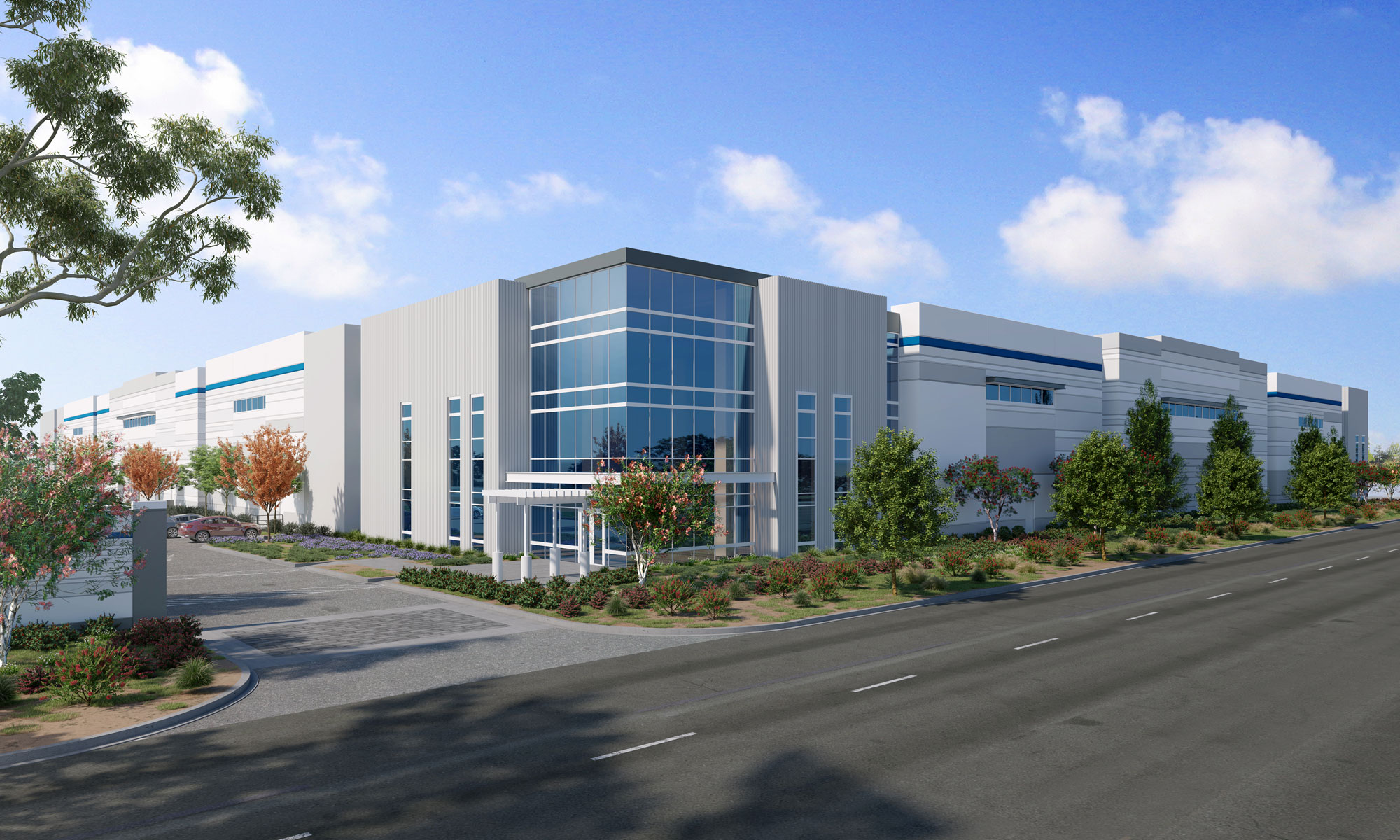 Sustainability is a defining element of the project, with green features that include 9 truck EV charging spaces, 19 automobile EV chargers, solar panels, and bike racks to encourage non-vehicular commuting. The project is designed to achieve LEED Certification, reflecting a strong commitment to environmental stewardship.