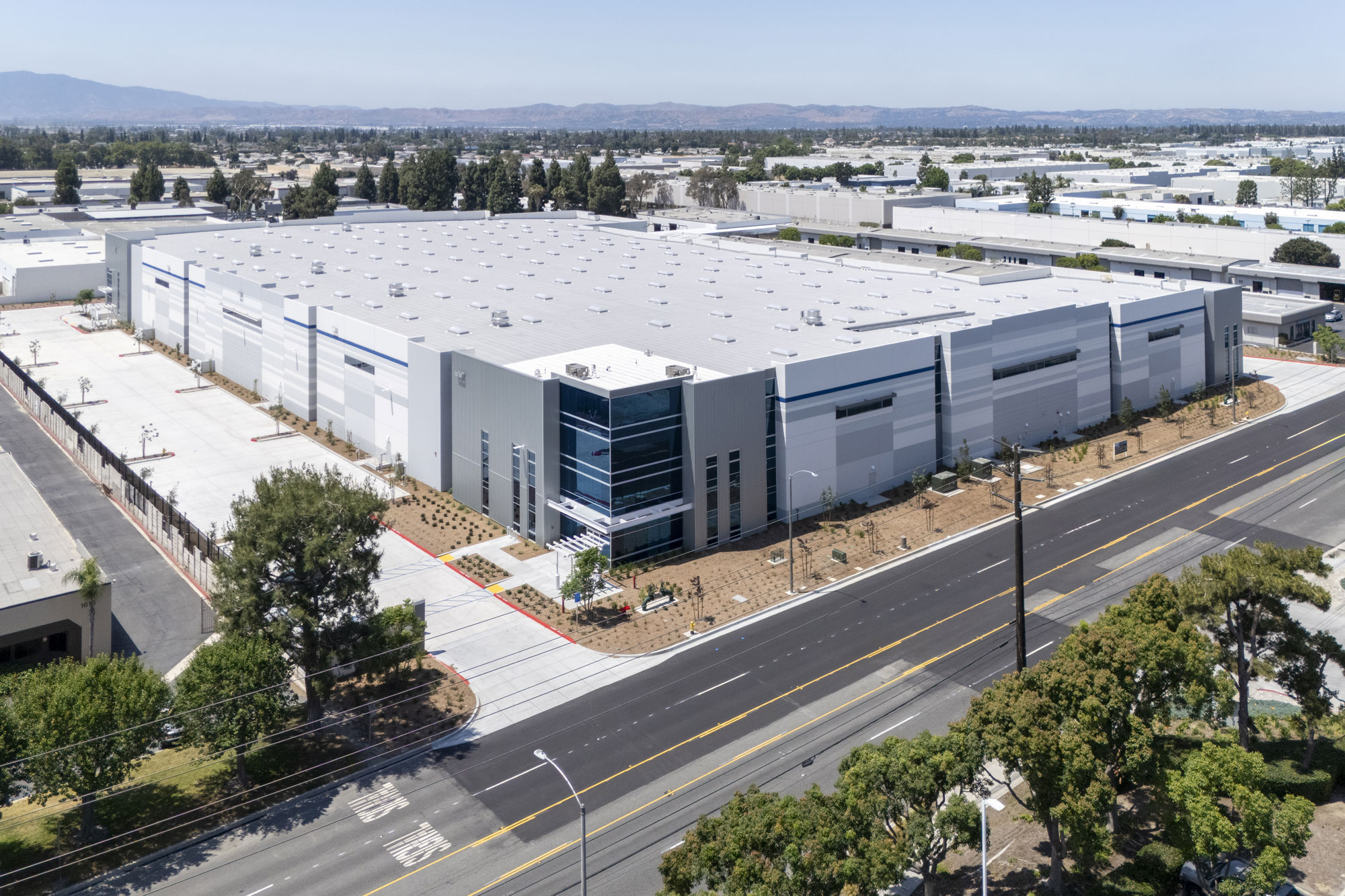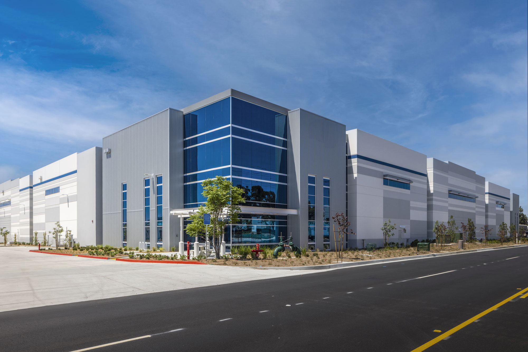 The building provides a generous 36-foot clear height, ensuring maximum efficiency and adaptability for modern logistics operations. It is also equipped with 20 dock doors and 2 drive-in doors, complemented by 5 trailer parking stalls to support high-volume distribution needs. Site circulation was carefully planned to separate truck traffic from automobile routes, ensuring safe and efficient access for trucks, employees, and visitors alike.