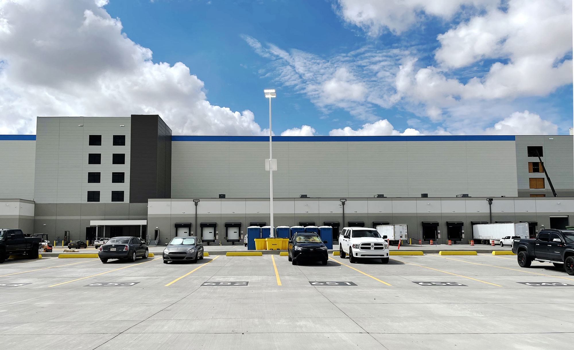 Amazon’s ABQ-1 and ABQ-5 facilities in Albuquerque, New Mexico, were designed by HPA as part of a 100-acre business park with two modern industrial buildings totaling 1.3 million square feet. ABQ-1 is the state’s first robotics-enabled fulfillment center, located off I-40 and Atrisco Vista Boulevard, where automated systems work alongside employees to handle high-volume e-commerce orders. ABQ-5 serves as a companion distribution center, supporting ABQ-1 within Amazon’s regional supply chain. The site includes large truck courts, trailer parking, and employee lots with direct freeway access, along with new roads, utilities, and drainage systems built to support the campus. Perimeter landscaping, entry features, and stormwater basins help balance the industrial scale with the surrounding desert setting. Together, the two buildings form a master-planned campus that highlights Amazon’s long-term investment in New Mexico’s logistics network.