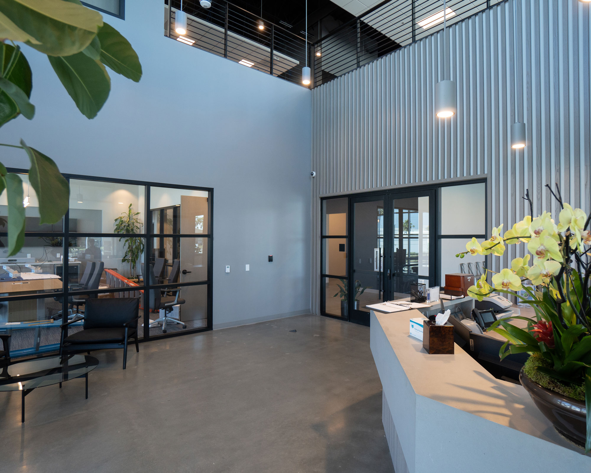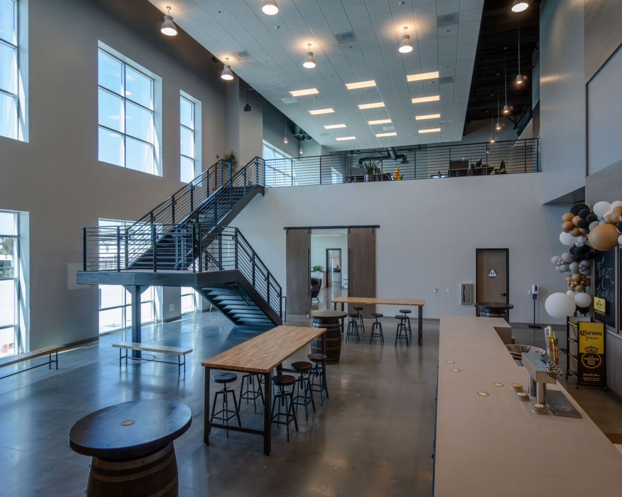 Reyes Distribution is conceived as a modern industrial workplace that balances efficiency with a sense of community. The open, flexible interiors pair raw, utilitarian finishes with warm wood accents, establishing a spatial rhythm that is both contemporary and inviting. Polished concrete floors, exposed structural systems, and natural wood details are carried throughout, reinforcing a cohesive design language that celebrates both function and craft.