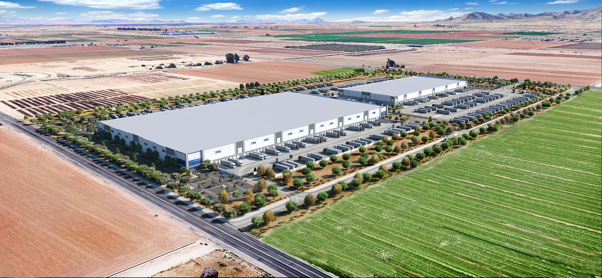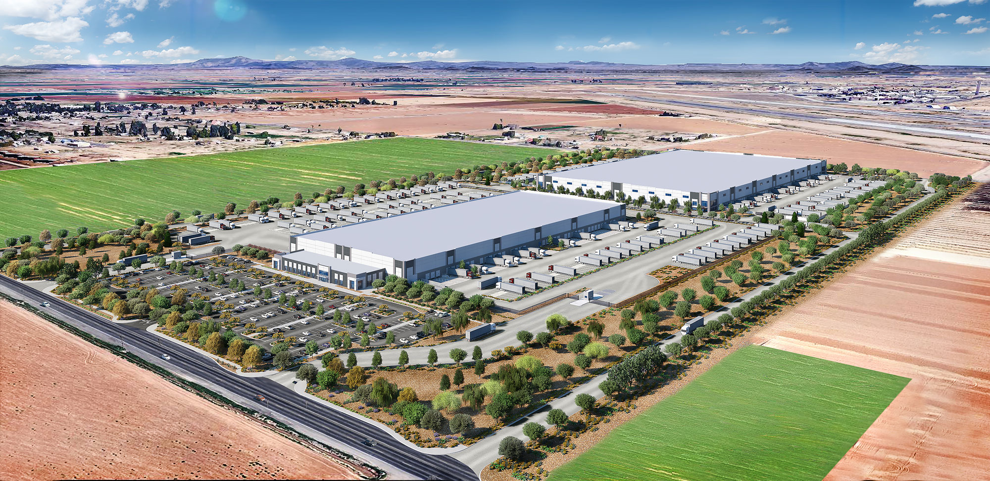 Set on 76.4 acres at Sarival Road and Maryland Avenue, this two-building industrial campus rises along the Loop 303 corridor in Glendale, Arizona, bringing nearly 1 million square feet of next-generation distribution space to the region.
